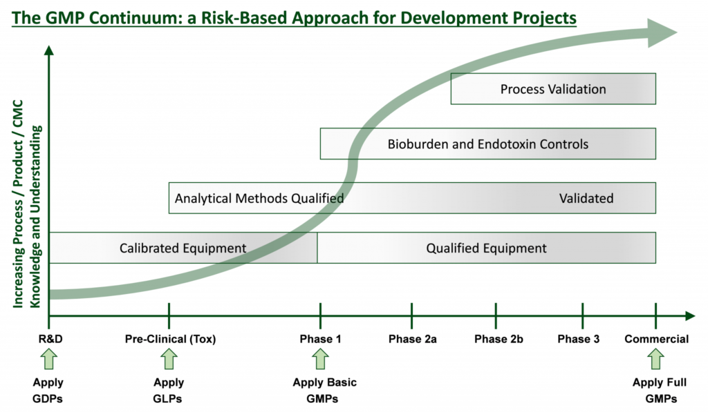 The graph below represents the appropriate regulatory framework applied at each stage of development, ensuring regulatory compliance and reasonable cost.